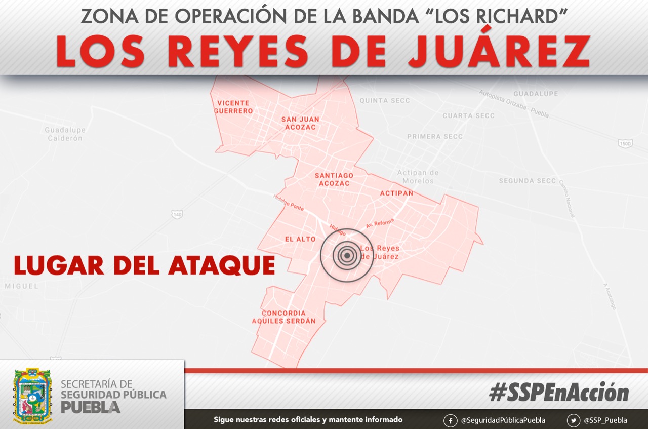 Derivado de las acciones coordinadas entre la Secretaría de Seguridad Pública Estatal, la Fiscalía General del Estado y el Ejército Mexicano, este fin de semana se logró desmantelar a una banda autodenominada “Los Richard”, integrada por al menos siete personas que además de, dedicarse al robo de hidrocarburo y robo a transporte de carga, presuntamente estarían vinculados con el homicidio del comandante y de un elemento de la policía municipal de Los Reyes de Juárez.