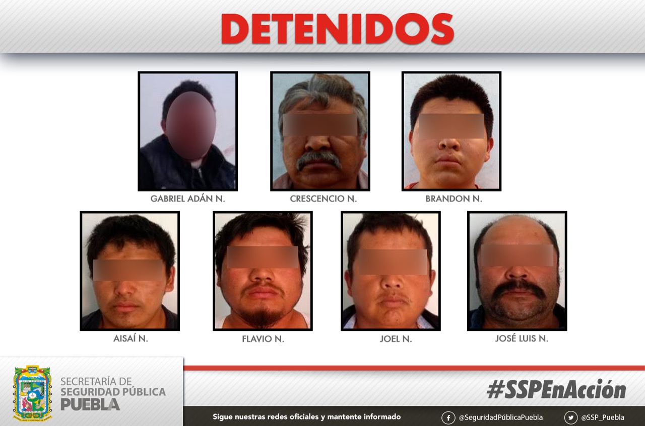 Minutos después de los homicidios referidos, se logró la detención de: Gabriel Adán N., de 34 años; Crescencio N., de 56 años; Brandon N., de 22 años; Aisaí N., de 18 años; Flavio N., de 26 años; Joel N., de 28 años; y José Luis N., de 30 años, todos originarios y vecinos de Los Reyes de Juárez.