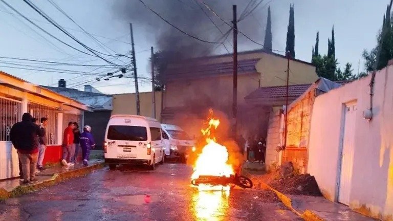 De acuerdo con versiones preliminares, ambos hombres habrían intentado huir a bordo de una motocicleta, misma que también fue incendiada por los pobladores luego de ser sorprendidos dentro del establecimiento comercial, identificado como “Tornillería Nealtican”. Sin embargo, fueron alcanzados por vecinos del lugar, quienes los retuvieron y comenzaron a golpearlos.