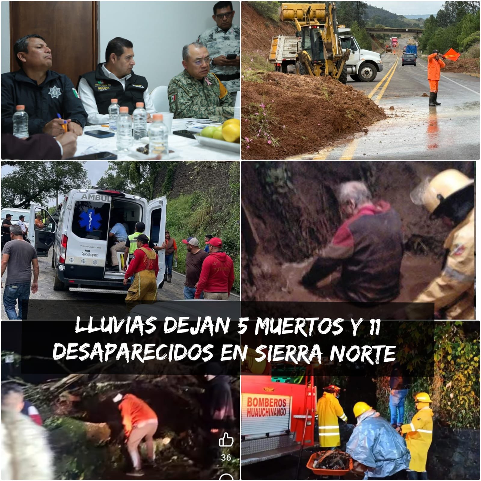 Las intensas lluvias que han azotado la Sierra Norte de Puebla en las últimas horas dejaron un saldo preliminar de cinco personas fallecidas, once desaparecidas y daños severos en al menos 25 municipios.