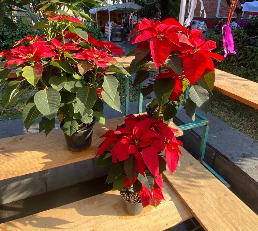 Atlixco, Puebla.- Con la temporada navideña en su apogeo, productores de flor de Nochebuena han establecido sus puestos de venta en el Parque del Carmen de la capital poblana, ofreciendo sus coloridas plantas directamente al público. Entre ellas se encuentra Sabina, una joven productora que trae su mercancía directamente desde los viveros de Atlixco, confiando en que la estratégica ubicación le permitirá tener una temporada exitosa.