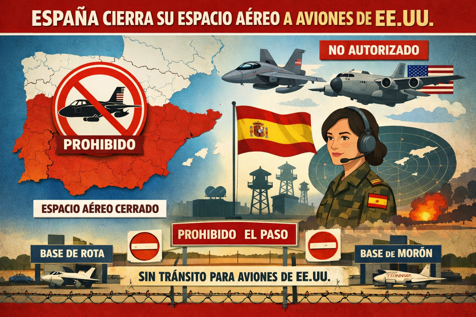 El gobierno de España ordenó el cierre de su espacio aéreo a aeronaves de Estados Unidos vinculadas con operaciones militares en Irán, en una decisión que refuerza su rechazo al conflicto en Oriente Medio y marca un nuevo punto de tensión diplomática con Washington.